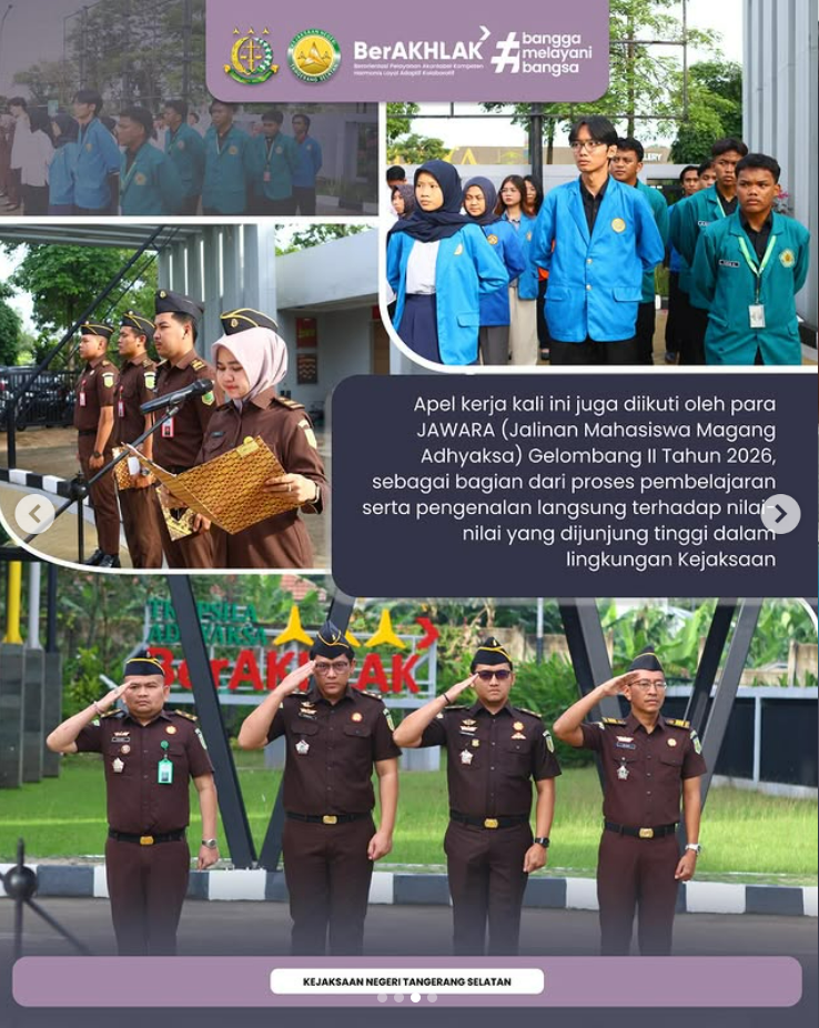 Apel kerja kali ini juga diikuti oleh para JAWARA (Jalinan Mahasiswa Magang Adhyaksa) Gelombang Il Tahun 2026, sebagai bagian dari proses pembelajaran serta pengenalan langsung terhadap nilai- nilai yang dijunjung tinggi dalam lingkungan Kejaksaan.