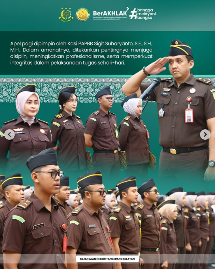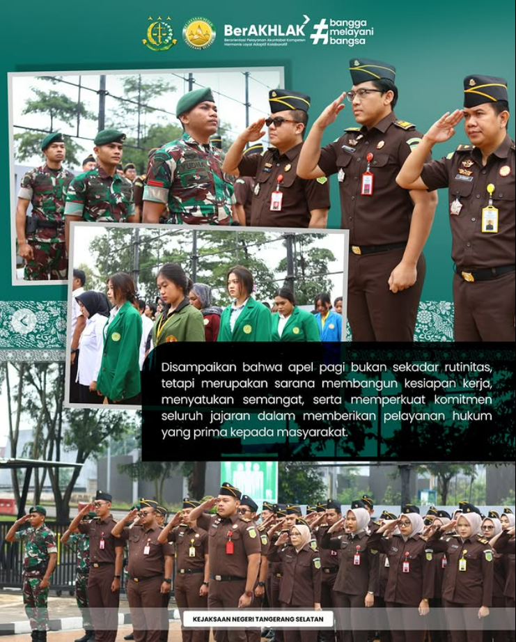 Mengawali pekan baru dengan semangat, seluruh Pegawai dan PPNPN Kejaksaan Negeri Tangerang Selatan mengikuti Apel Pagi yang berlangsung dengan tertib.