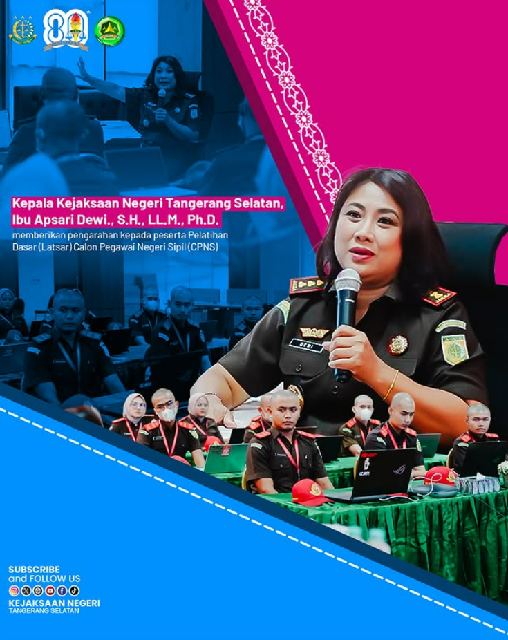 Kepala Kejaksaan Negeri Tangerang Selatan, Apsari Dewi, S.H., LL.M., Ph.D. memberikan pengarahan pada Kegiatan Pelatihan Dasar Calon Pegawai Negeri Sipil (Latsar CPNS) Tahun 2025 bagi Golongan III di Kejaksaan Negeri Tangerang Selatan, Rabu (15/10/2025). Dalam arahannya, Kepala Kejaksaan Negeri Tangerang Selatan menyampaikan bahwa pelatihan dasar ini bukan sekadar kegiatan seremonial untuk memenuhi syarat pengangkatan sebagai […]