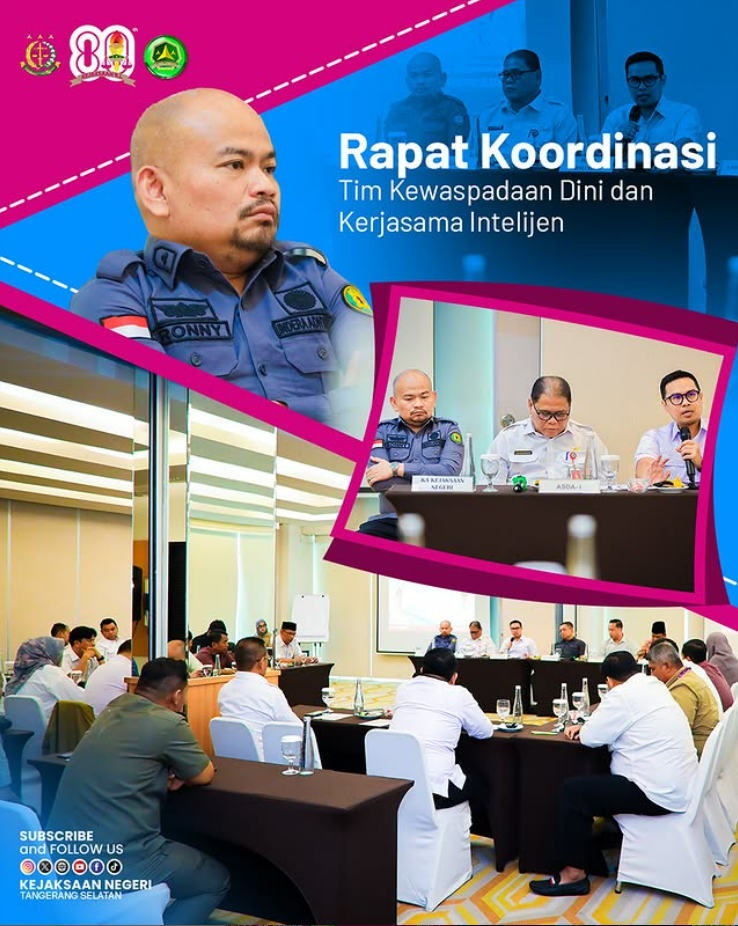 Kepala Seksi Intelijen Ronny BonaTua Hutagalung., SH., MH. menghadiri Rapat Koordinasi Tim Kewaspadaan Dini dan Kerjasama Intelijen di Kejaksaan Tinggi Banten di Hotel Santika BSD.Rabu (15/10/2025) Melalui Rapat Koordinasi Tim Kewaspadaan Dini dan Kerjasama Intelijen, seluruh unsur terkait berkomitmen meningkatkan sinergi dan kesiapsiagaan menghadapi dinamika serta potensi permasalahan di wilayah Kota Tangerang Selatan.
