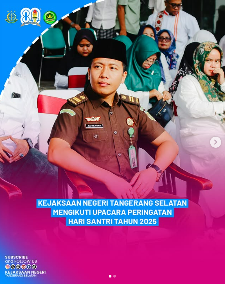 Dalam memperingati Hari Santri Nasional 2025 di Kota Tangerang Selatan (Tangsel), Kepala Kejaksaan Negeri Tangerang Selatan diwakili oleh Jaksa Fungsional Bapak Munandar., SH., MH. telah mengikuti kegiatan Upacara peringatan Hari Santri Nasional 2025 yang dipimpin oleh Wakil Wali Kota Tangsel, Pilar Saga Ichsan.Rabu (22/10/2025) Harapannya momentum Hari Santri Nasional tidak hanya menjadi seremoni tahunan, melainkan […]