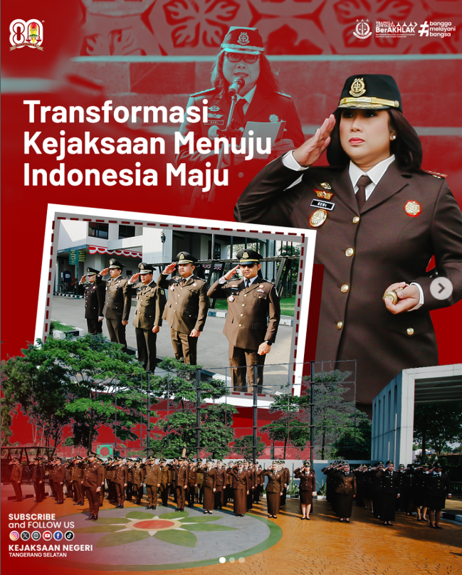 Kepala Kejaksaan Negeri Tangerang Selatan, Apsari Dewi, S.H., LL.M., Ph.D. bertindak selaku Inspektur pada Upacara Peringatan Hari Lahir Kejaksaan ke-80 yang diikuti oleh seluruh pegawai pada Selasa (02/09/2025). Dalam amanat Jaksa Agung RI, ST. Burhanuddin yang dibacakan oleh Kepala Kejaksaan Negeri Tangerang Selatan, ditegaskan bahwa peringatan Hari Lahir Keiaksaan merupakan momentum untuk melakukan evaluasi, introspeksi, […]