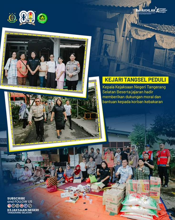 Kejaksaan Negeri Tangerang Selatan mengunjungi korban kebakaran yang menimpa Kompleks Asrama Polisi Serpong. Musibah kebakaran tersebut telah menyebabkan sejumlah keluarga kehilangan tempat tinggal beserta harta benda. Sebagai wujud kepedulian sosial, Kejari Tangerang Selatan menyerahkan bantuan berupa paket sembako serta kebutuhan pokok lainnya yang diharapkan dapat meringankan beban para korban, sekaligus memberikan dorongan semangat untuk bangkit […]