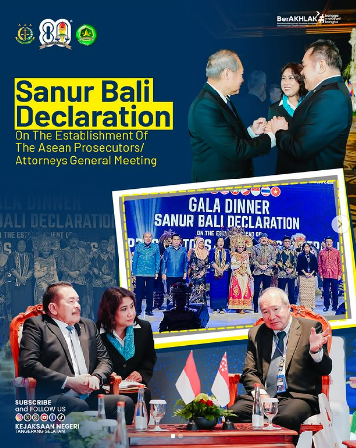 Kepala Kejaksaan Negeri Tangerang Selatan, Apsari Dewi, S.H., LL.M., Ph.D. Menghadiri kegiatan Penyelenggaraan Penandatanganan Deklarasi Pembentukan ASEAN Prosecutors/Attorneys General Meeting (APAGM) yang dilaksanakan pada Senin (15/09/2025). Penandatanganan Deklarasi Sanur Bali menjadi tonggak terbentuknya forum resmi penuntut umum se-ASEAN untuk menghadapi gelombang kejahatan lintas negara yang semakin sulit dibendung. Jaksa Agung Republik Indonesia, ST Burhanuddin, dalam […]