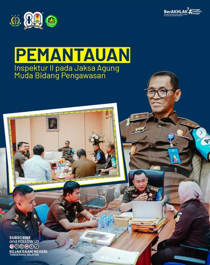Inspektur II pada Jaksa Agung Muda Bidang Pengawasan Didik Istiyanta, S.H., M.H. pimpin Pemantauan yang dilaksanakan di Kejaksaan Negeri Tangerang Selatan pada Senin (16/09/2025). Jajaran Pengawasan pada Jaksa Agung Muda Bidang Pengawasan melakukan Pemantauan ini guna tercapainya Kejaksaan sebagai lembaga penegak hukum yang modern, profesional, berintegritas, transparan dan akuntabel dalam pemenuhan tugas dan fungsi kelembagaan […]