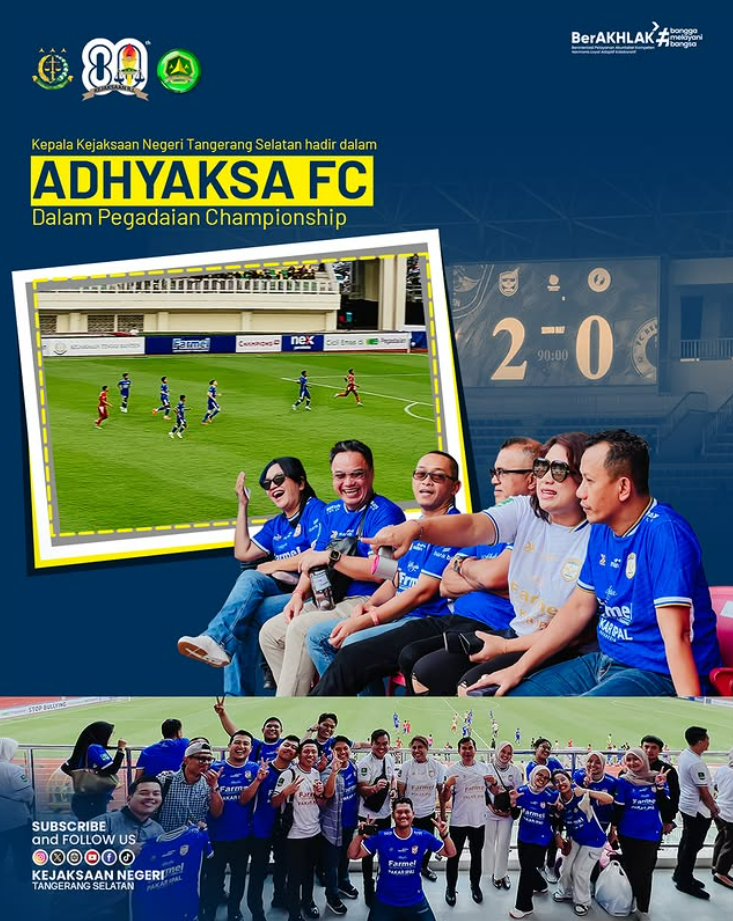 Sebagai bentuk dukungan, Kepala Kejaksaan Negeri Tangerang Selatan, Apsari Dewi, S.H., LL.M., Ph.D. hadir pada pertandingan perdana Adhyaksa FC dalam Pegadaian Championship (Liga 2) 2025/26 yang digelar di Banten International Stadium, Serang, Senin (24/09/2025). Main perdana di kandang sendiri, Adhyaksa FC langsung menekan pertahanan Bekasi City dan berhasil menutup pertandingan dengan skor 2-0 kemenangan untuk […]