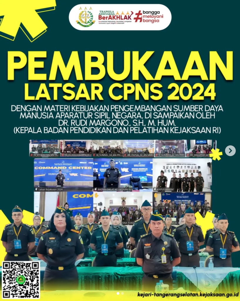 Badan Pendidikan dan Pelatihan Kejaksaan RI menyelenggarakan kegiatan Bimbingan Teknis (Bimtek) dan Manajemen (Pembelajaran di Luar Kampus), melalui program Kejaksaan Corporate University pada Rabu (16/10/2024) secara virtual. Pada kesempatan ini Kepala Kejaksaan Negeri Tangerang Selatan Apsari Dewi S.H., LL, M., Ph.D. bersama dengan Jaksa Fungsional hadir dalam Bimbingan Teknis yang mengangkat tema “Perbandingan Hukum Negara […]