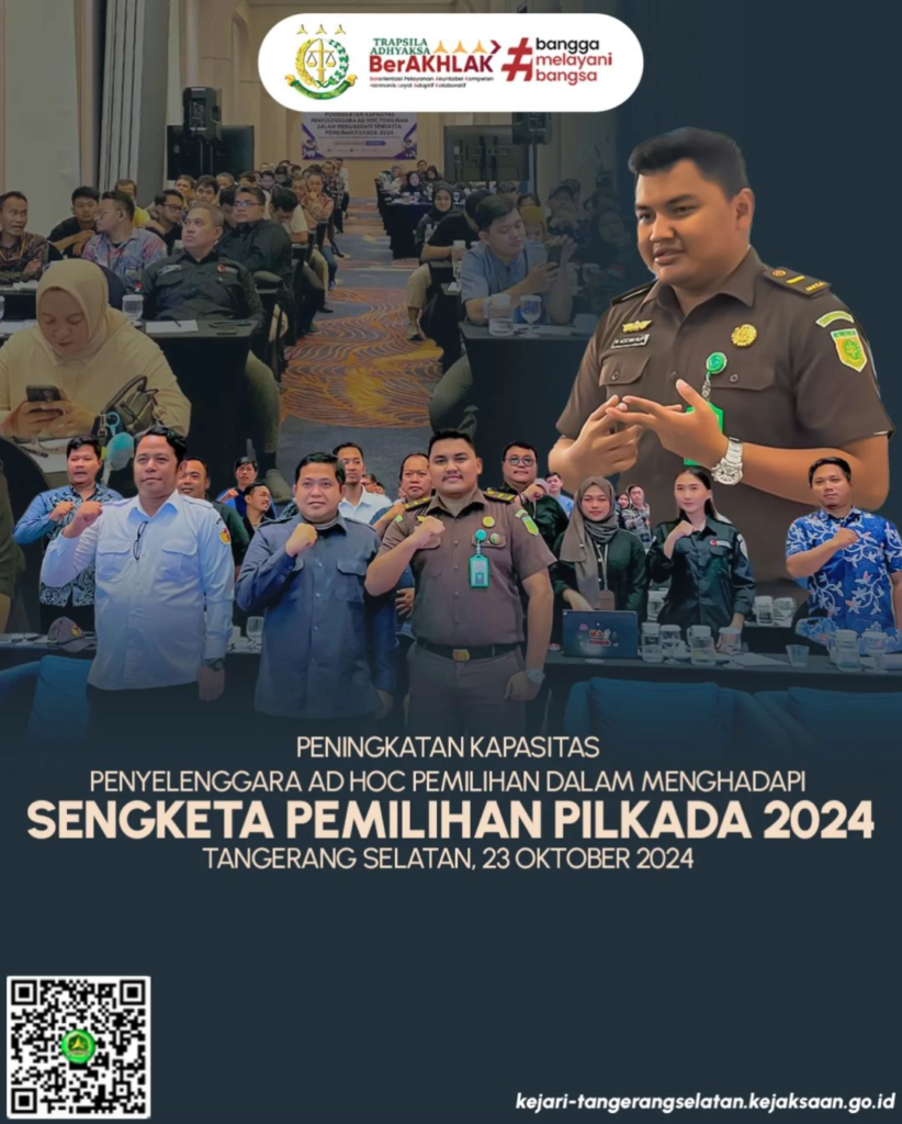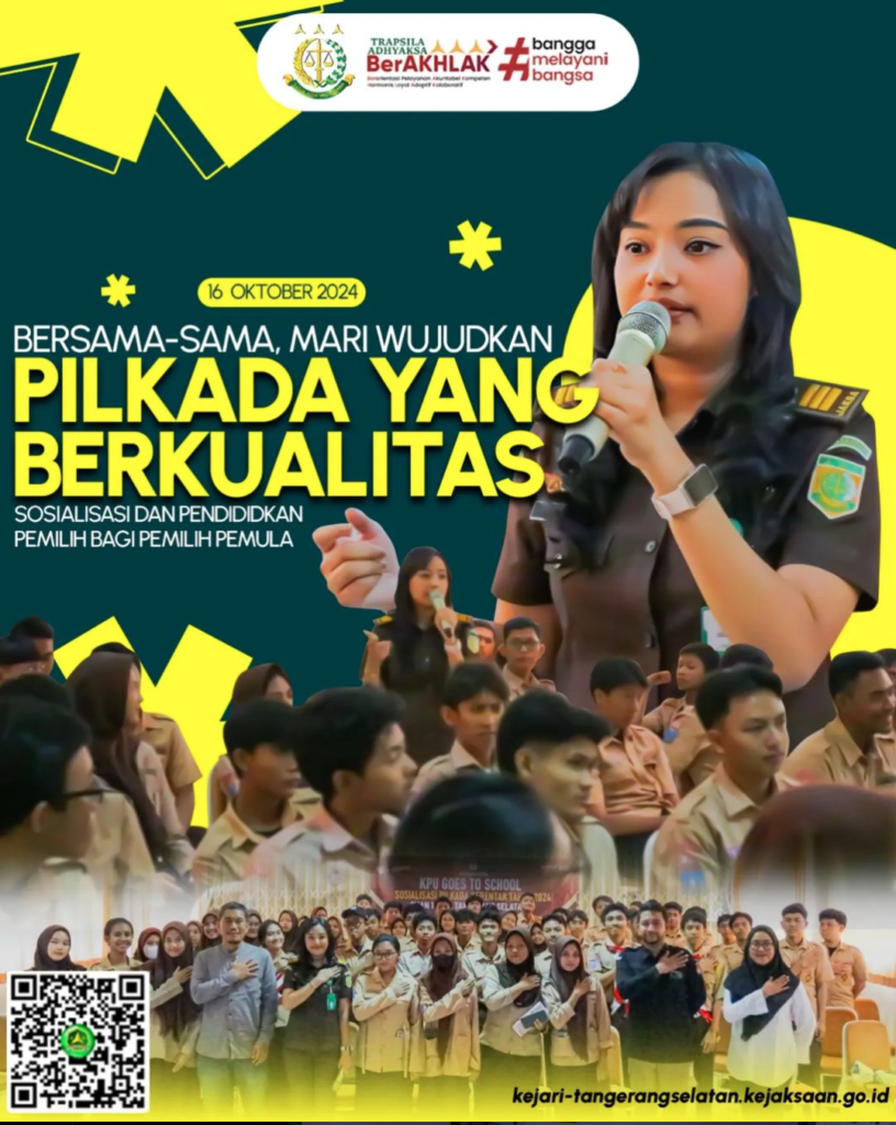 Kejaksaan Negeri Tangerang Selatan dalam hal ini diwakili oleh Jaksa Fungsional Bidang Intelijen Tita Hidella. SH., MH,. hadir sebagai Narasumber hari Ke 7 pada kegiatan Sosialisasi Pilkada Serentak Tahun 2024 di SMA Negeri 1 Tangerang Selatan dengan tema Sosialisasi dan Pendididkan Pemilih bagi Pemilih Pemula. Kegiatan ini bertujuan untuk memberikan pemahaman yang lebih mendalam mengenai […]