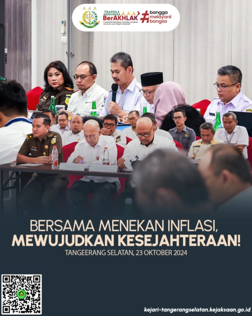Kepala Kejaksaan Negeri Tangerang Selatan Apsari Dewi S.H., LL, M., Ph.D. didampingi oleh Kepala Seksi Intelijen Hasbullah, S.H., M.H. dan Kepala Seksi Perdata dan Tata Usaha Negara Satya Wirawan, S.H., M.H. hadir dalam Rapat Koordinasi Pengendalian Inflasi Daerah (High Level Meeting TPID) Triwulan III Tahun 2024, Rabu (23/10/2024). Kegiatan ini merupakan upaya Tim Pengendali Inflasi […]