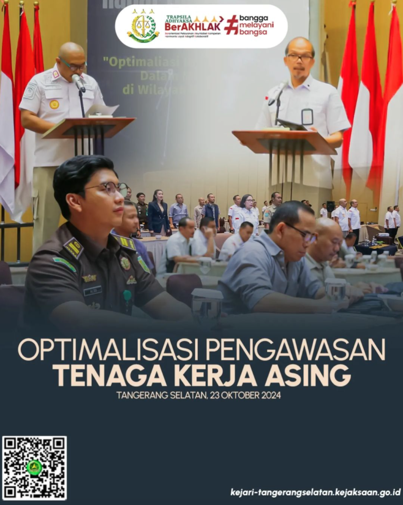 Kepala Sub-Seksi Ideologi, Politik, Pertahanan, Keamanan, Sosial, Budaya, Kemasyarakatan, dan Teknologi Informasi Kejaksaan Negeri Tangerang Selatan Aldo Taufiq Pratama, S.H., M.H. hadir dalam rapat koordinasi yang diadakan oleh Kantor Imigrasi Kelas I Khusus Non TPI Tangerang, Rabu Rabu (23/10/2024). Dengan mengangkat tema “Optimalisasi Kolaborasi Strategis Tim Pengawasan Orang Asing (TIMPORA) Dalam Menyelaraskan Upaya Pengawasan Tenaga […]