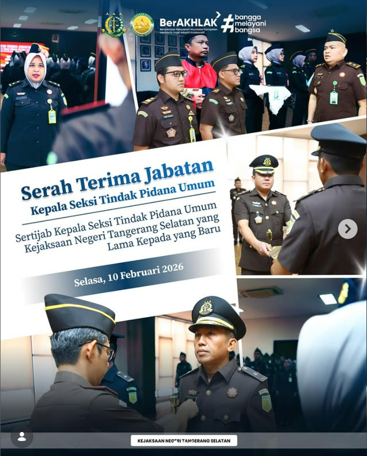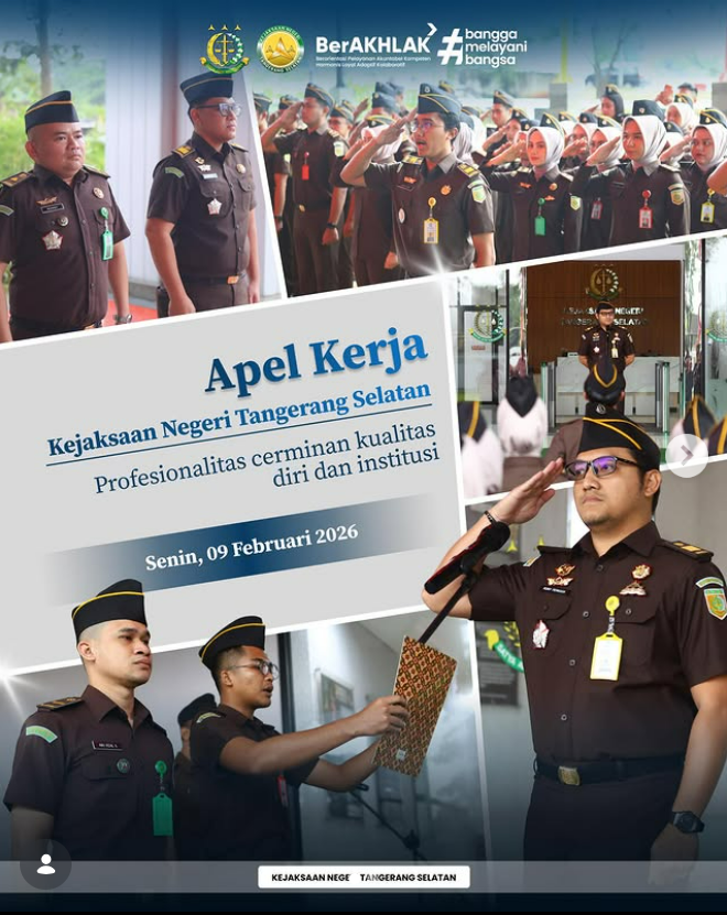 Kejaksaan Negeri Tangerang Selatan melaksanakan apel pagi yang diikuti oleh seluruh pegawai dan jajaran sebagai wujud komitmen bersama dalam menegakkan disiplin serta memperkuat nilai-nilai dasar aparatur penegak hukum. Dalam amanatnya, Kepala Seksi Perdata dan Tata Usaha Negara, Mohamad Rizki Romy Perkasa, S.H., M.H. menekankan pentingnya integritas sebagai fondasi utama dalam pelaksanaan tugas, baik dalam pelayanan […]