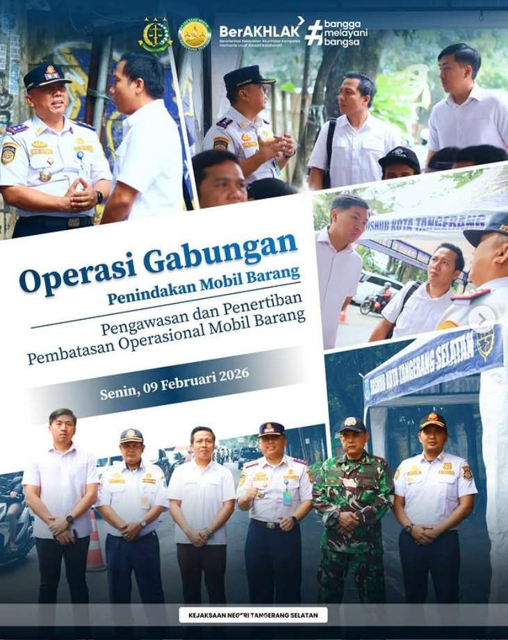 Pemerintah Kota Tangerang Selatan melaksanakan Operasi Gabungan Penindakan Mobil Barang yang melibatkan unsur lintas sektor, termasuk Kejaksaan Negeri Tangerang Selatan yang diwakili oleh Plt. Kepala Subseksi I Seksi Intelijen Munandar, S.H., M.H. dan Plt. Kepala Subseksi II Seksi Intelijen Abiyu Ilham Hamid, S.H., sebagai upaya penegakan ketertiban dan kepatuhan terhadap peraturan lalu lintas dan angkutan […]