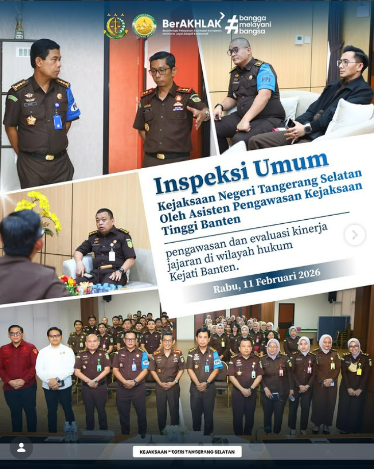 Kejaksaan Negeri Tangerang Selatan menerima inspeksi umum dari Kejaksaan Tinggi Banten sebagai bagian dari pelaksanaan pengawasan dan evaluasi kinerja jajaran di wilayah hukum Kejati Banten. Inspeksi dipimpin oleh Asisten Pengawasan, Romiyasi, S.H., M.H., Asisten Pemulihan Aset, Muhammad Akbar Yahya, S.H., M.H. bersama tim pemeriksa dari Bidang Pengawasan, dan disambut langsung oleh Kepala Kejari Tangerang Selatan […]