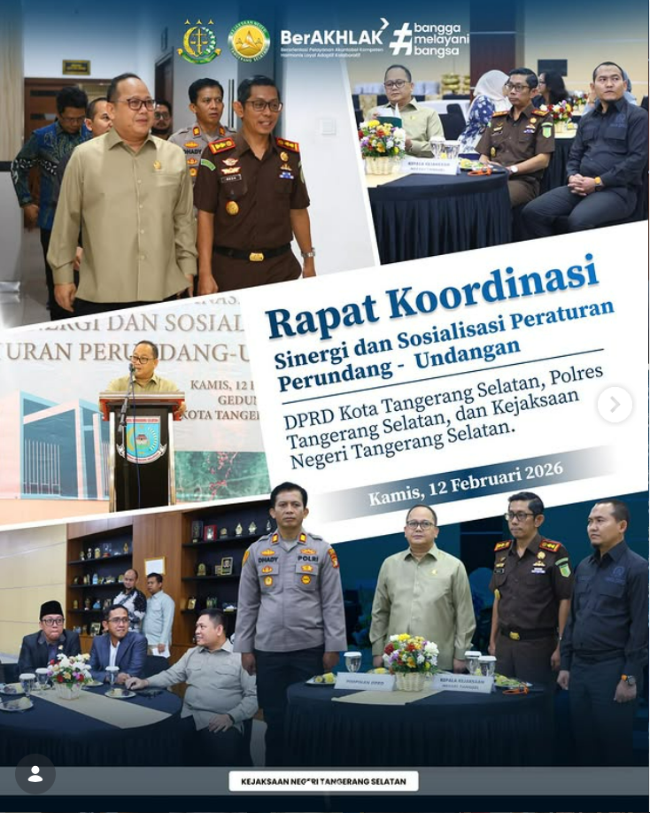 Dalam rangka Sosialisasi Peraturan dan Perundang-Undangan, diadakan Rapat Koordinasi Forum Komunikasi Pimpinan Daerah (Forkopimda) sebagai wujud sinergi antara DPRD Kota Tangerang Selatan, Kepolisian Resor Tangerang Selatan, dan Kejaksaan Negeri Tangerang Selatan. Rapat tersebut dihadiri oleh Kepala Kejaksaan Negeri Tangerang Selatan, Apreza Darul Putra, S.H., M.H., bersama unsur pimpinan daerah lainnya sebagai bentuk komitmen dalam memperkuat […]