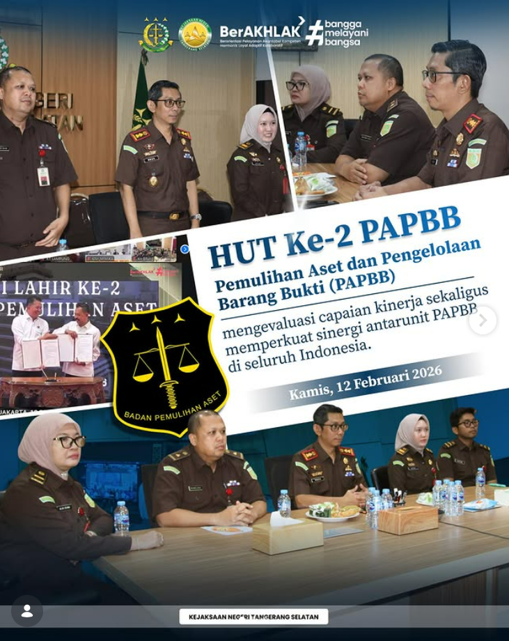 Kepala Kejaksaan Negeri Tangerang Selatan, Apreza Daryl Putra, S.H., M.H. bersama jajaran Pemulihan Aset dan Pengelolaan Barang Bukti (PAPBB) mengikuti video conference dalam rangka peringatan Hari Ulang Tahun (HUT) ke-2 PAPBB. Acara vicon ini diikuti oleh seluruh satuan kerja Kejaksaan di berbagai wilayah, menandai dua tahun keberadaan PAPBB sebagai salah satu ujung tombak dalam pengelolaan […]