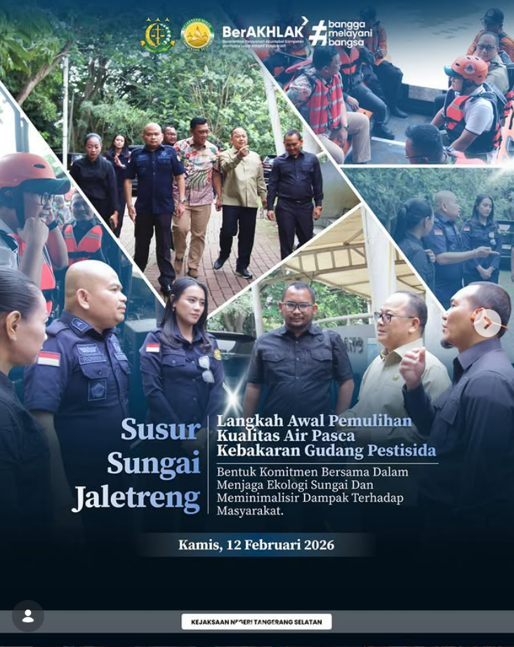 Pemerintah Kota Tangerang Selatan melaksanakan kegiatan susur Sungai Jaletreng sebagai langkah awal pemulihan kualitas air pasca kebakaran gudang pestisida di kawasan pergudangan Taman Tekno, Setu, pada 9 Februari lalu. Kegiatan ini dipimpin oleh Wakil Wali Kota Tangerang Selatan, Pilar Saga Ichsan, bersama jajaran Forkopimda, Dinas Lingkungan Hidup, BPBD, OPD terkait, termasuk Kejaksaan Negeri Tangerang Selatan. […]