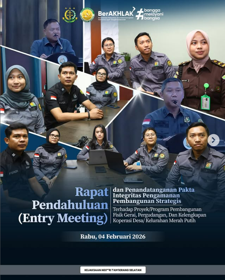 Kejaksaan Republik Indonesia melaksanakan kegiatan Monitoring dan Evaluasi Laporan Triwulan IV Tahun 2025 sebagai bagian dari upaya pembinaan, serta peningkatan kualitas kinerja dan tata kelola organisasi. Kegiatan ini diikuti oleh Kepala Kejaksaan Negeri Tangerang Selatan, Apreza Darul Putra, S.H., M.H. beserta jajaran secara daring. Dalam arahannya, Jaksa Agung Muda Pembinaan, menyoroti perkembangan pemanfaatan teknologi dan […]