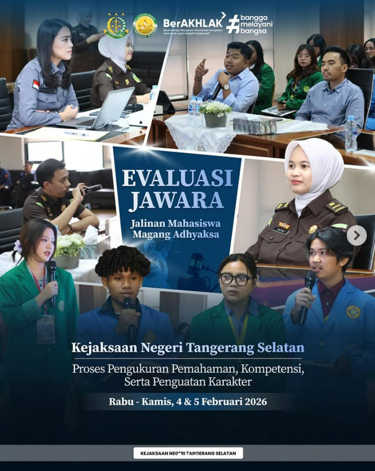 Program JAWARA Kejaksaan Negeri Tangerang Selatan memasuki tahapan evaluasi ✨ Para mahasiswa magang yang tergabung dalam Program JAWARA mengikuti ujian evaluasi sebagai bagian dari proses pengukuran pemahaman, kompetensi, serta penguatan karakter setelah menjalani rangkaian pembinaan dan pemaparan materi dari seluruh bidang di lingkungan Kejaksaan Negeri Tangerang Selatan. Evaluasi ini dilaksanakan setelah para JAWARA memperoleh pembekalan […]