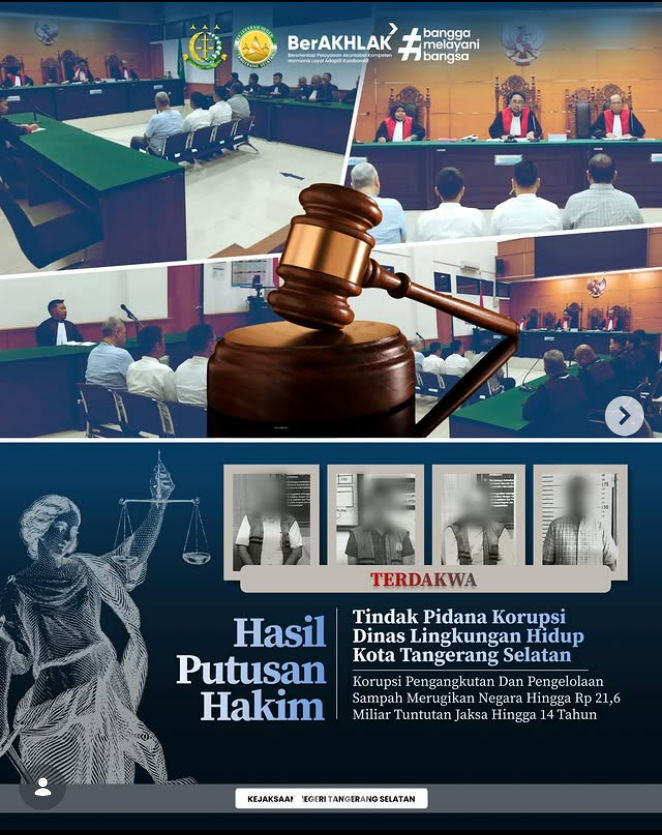 Hasil Putusan Hakim Tindak Pidana Korupsi Dinas Lingkungan Hidup Kota Tangerang Selatan