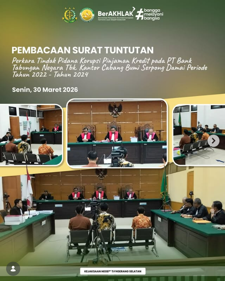 Pembacaan Surat Tuntutan Dugaan Tindak Pidana Korupsi Pinjaman Kredit pada PT Bank Tabungan Negara Tbk. Kantor Cabang Bumi Serpong Damai Periode Tahun 2022 – Tahun 2024