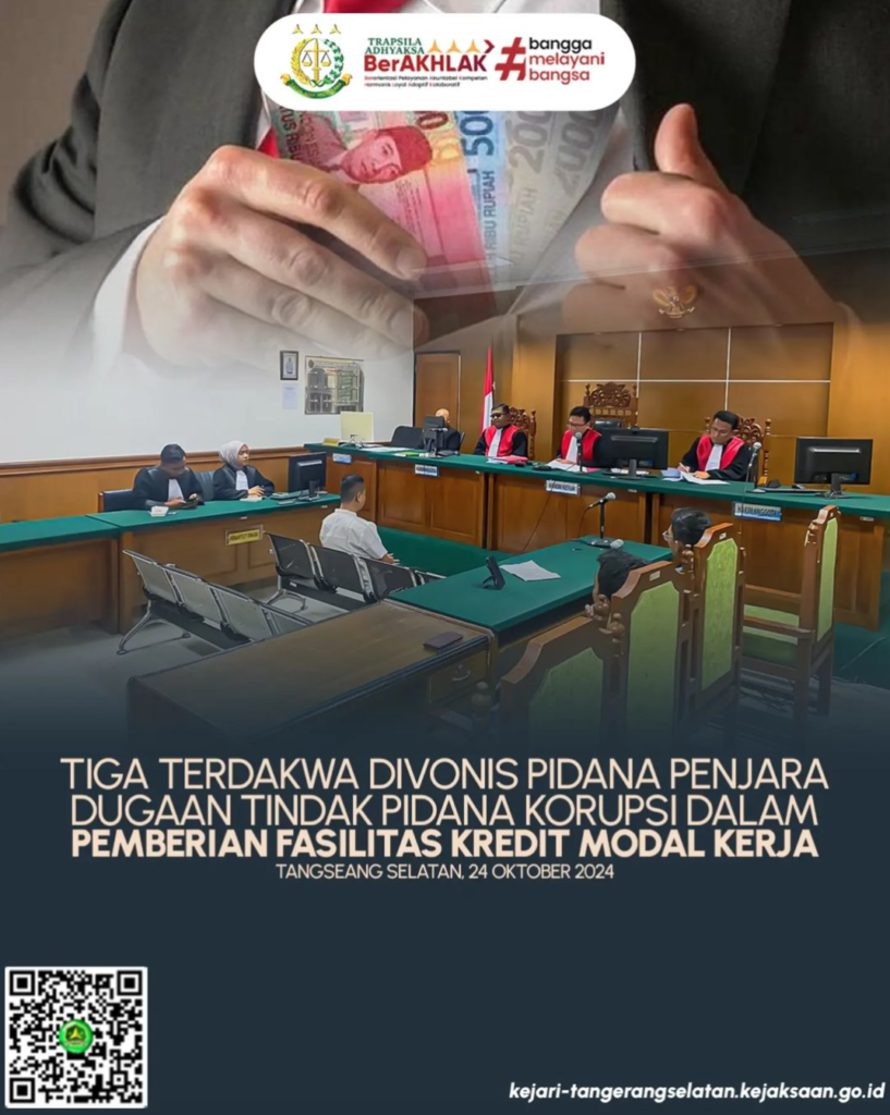 Tiga Terdakwa Divonis Pidana Penjara dalam Dugaan Tindak Pidana Korupsi Pemberian Fasilitas Kredit Modal KerjaTiga Terdakwa Divonis