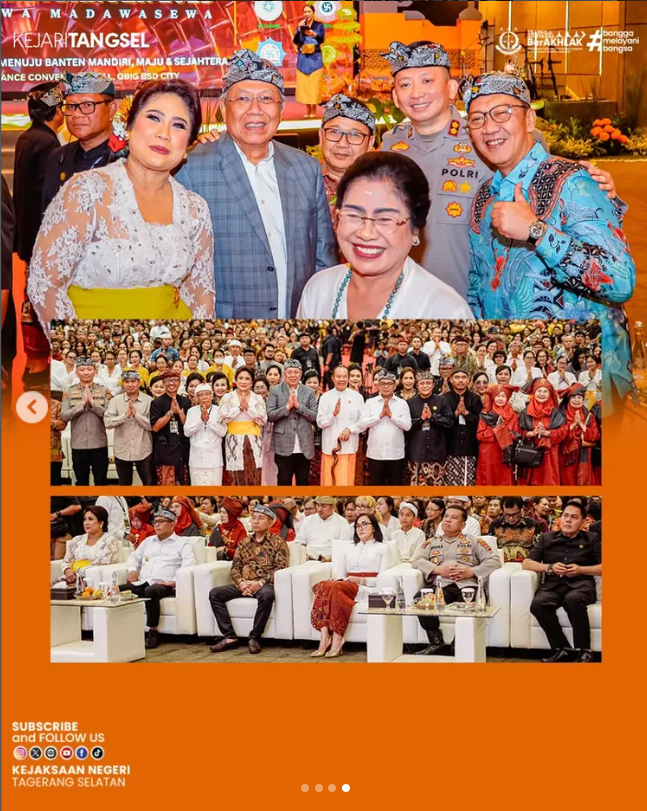 Kepala Kejaksaan Negeri Tangerang Selatan Apsari Dewi, S.H., LL.M., PhD selaku ketua panitia acara yang digelar di The Entrance Convention Hall Q-Big BSD City pada Sabtu (24/05/2025) ini, dalam sambutannya menyampaikan “Dharma Santi Banten Tahun 2025 kali ini mengusung tema ‘Manawasewa, Madawasewa Menuju Indonesia Emas 2045’ yang bermakna pengabdian dan pelayanan kepada sesama manusia”.