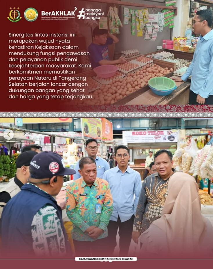 Sinergitas lintas instansi ini merupakan wujud nyata kehadiran Kejaksaan dalam mendukung fungsi pengawasan dan pelayanan publik demi kesejahteraan masyarakat. Kami berkomitmen memastikan perayaan Nataru di Tangerang Selatan berjalan lancar dengan dukungan pangan yang sehat dan harga yang tetap terjangkau.