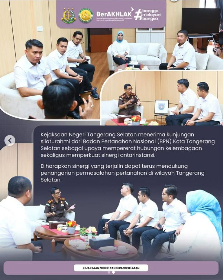 Kepala Kejaksaan Negeri Tangerang Selatan, Apreza Darul Putra, S.H., M.H., menerima kunjungan silaturahmi dari Dari Badan Pertanahan Nasional (BPN) Kota Tangerang Selatan.