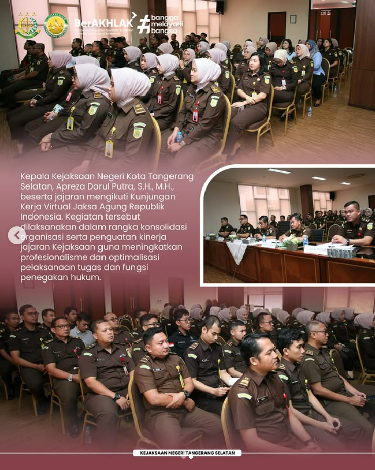 Kepala Kejaksaan Negeri Kota Tangerang Selatan, Apreza Darul Putra, S.H., M.H., beserta seluruh Pegawai Kejaksaan Negeri Tangerang Selatan mengikuti Kunjungan Kerja Virtual Jaksa Agung Republik Indonesia.