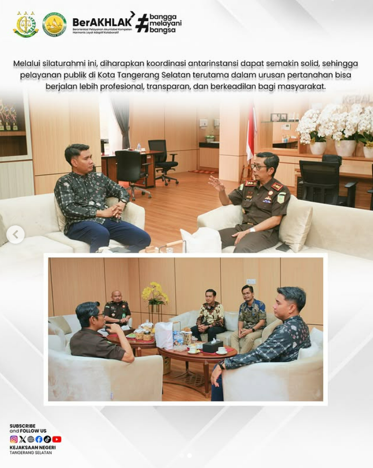 Melalui silaturahmi ini, diharapkan koordinasi antarinstansi dapat semakin solid, sehingga pelayanan publik di Kota Tangerang Selatan terutama dalam urusan pertanahan bisa berjalan lebih profesional, transparan, dan berkeadilan bagi masyarakat.