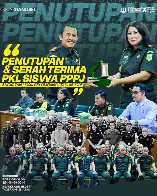 Penutupan Program Praktek Kerja Lapangan (PKL) Peserta Pendidikan dan Pelatihan Pembentukan Jaksa (PPPJ) Angkatan LXXXII Gelombang I Tahun 2025 di Kejaksaan Negeri Tangerang Selatan