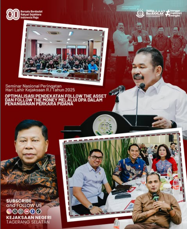 Kepala Kejaksaan Negeri Tangerang Selatan, Ibu Apsari Dewi., S.H., LL.M., Ph.D. Menghadiri Seminar Nasional bertema “Optimalisasi Pendekatan Follow The Asset dan Follow The Money melalui