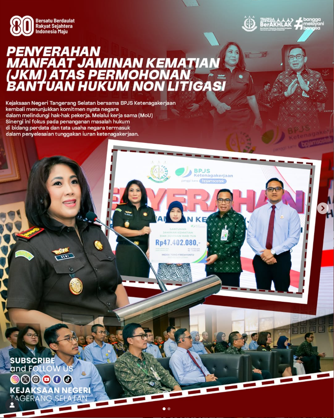 Kejaksaan Negeri Tangerang Selatan bersama BPJS Ketenagakerjaan kembali menunjukkan komitmen nyata negara dalam melindungi hak-hak pekerja. Melalui kerja sama (MoU), sinergi ini fokus pada penanganan