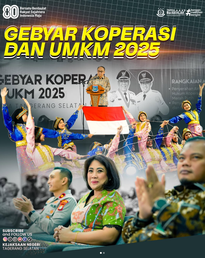 Kepala Kejaksaan Negeri Tangerang Selatan, Apsari Dewi, S.H., LL.M., Ph.D., hadir dalam kegiatan Peringatan Hari Koperasi ke-78 bertajuk “Gebyar Koperasi dan UMKM”, yang dirangkai dengan