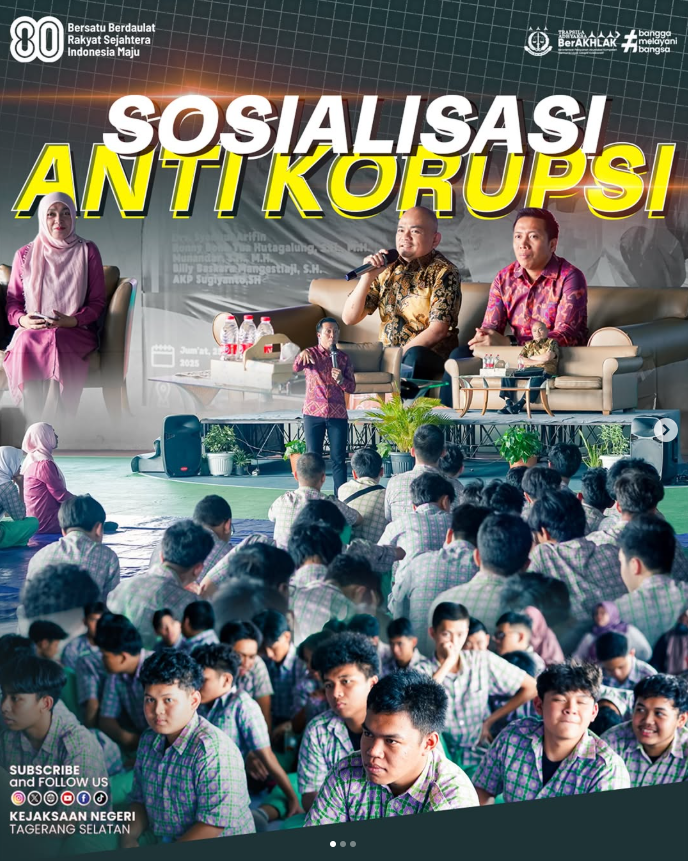 Kepala Seksi Intelijen Kejaksaan Negeri Tangerang Selatan, Ronny Bona Tua Hutagalang, S.H., M.H., hadir sebagai narasumber dalam kegiatan Sosialisasi Anti Korupsi yang diselenggarakan oleh SMA