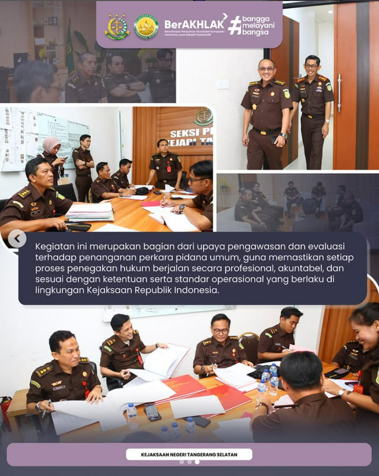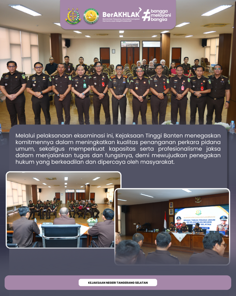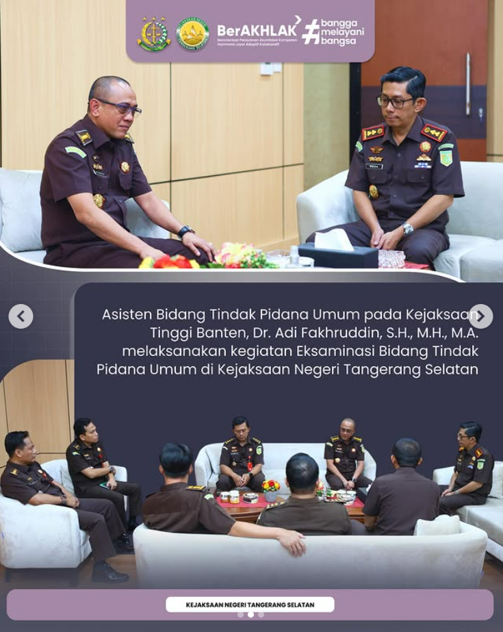 Asisten Bidang Tindak Pidana Umum pada Kejaksaan Tinggi Banten, Dr. Adi Fakhruddin, S.H., M.H., M.A. melaksanakan kegiatan Eksaminasi Bidang Tindak Pidana Umum di Kejaksaan Negeri Tangerang Selatan.