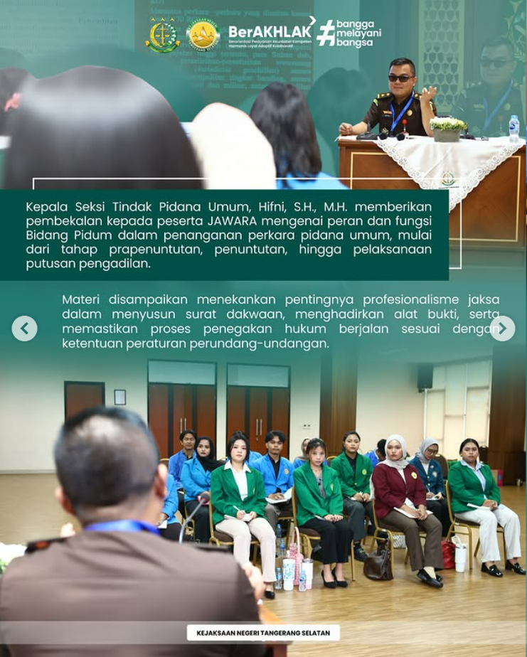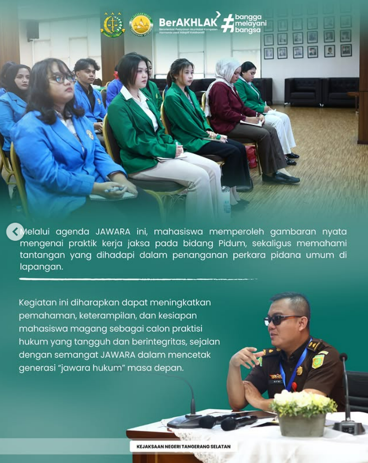 Melalui agenda JAWARA ini, mahasiswa memperoleh gambaran nyata mengenai praktik kerja jaksa pada bidang Pidum, sekaligus memahami tantangan yang dihadapi dalam penanganan perkara pidana umum di lapangan.