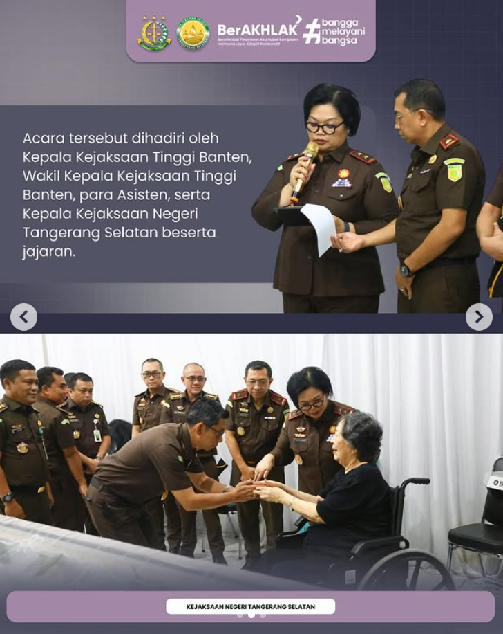 Dalam kesempatan tersebut Kepala Kejaksaan Tinggi Banten, Bernadeta Maria Erna Elastiyani, S.H., M.H. didampingi Wakil Kepala Kejaksaan Tinggi Banten, Ardito Muwardi, S.H., M.H., para Asisten, serta Kepala Kejaksaan Negeri Tangerang Selatan, Apreza Darul Putra, S.H., M.H. beserta jajaran hadir untuk melepas almarhum sebelum diberangkatkan ke Sulawesi Selatan untuk dimakamkan.