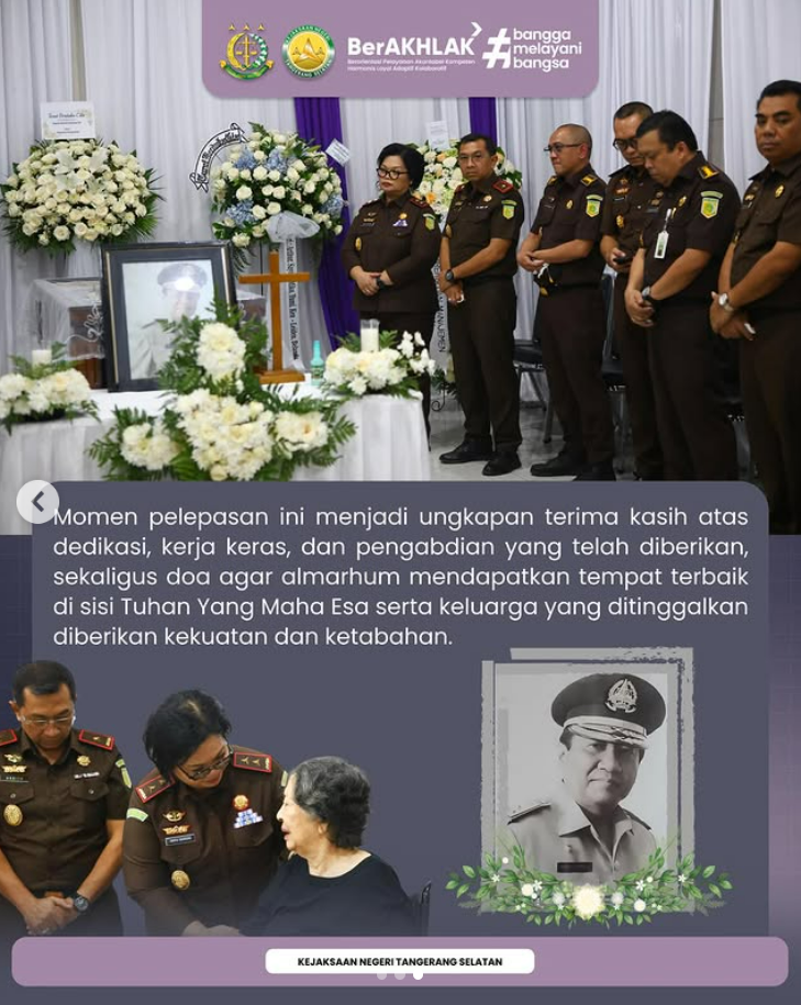 Kehadiran para pimpinan dan jajaran merupakan bentuk penghormatan terakhir sekaligus ungkapan terima kasih atas dedikasi, integritas, dan pengabdian almarhum selama mengabdikan diri di institusi Kejaksaan.