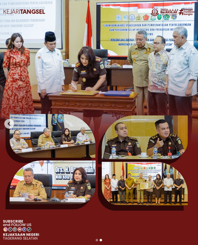 Kepala Kejaksaan Negeri Tangerang Selatan Apsari Dewi, S.H., LL.M., Ph.D didampingi oleh Kepala Seksi Tindak Pidana Umum Hifni, S.H., M.H. hadir dalam kegiatan Forum Komunikasi Pencegahan dan Pemberantasan Penyalahgunaan dan Peredaran Gelap Narkotika serta Prekursor Narkotika (Forkom P4GN) yang diselenggarakan oleh Pemerintah Kota Tangerang Selatan bersama dengan Badan Narkotika Nasional (BNN) pada Selasa (03/06/2025).