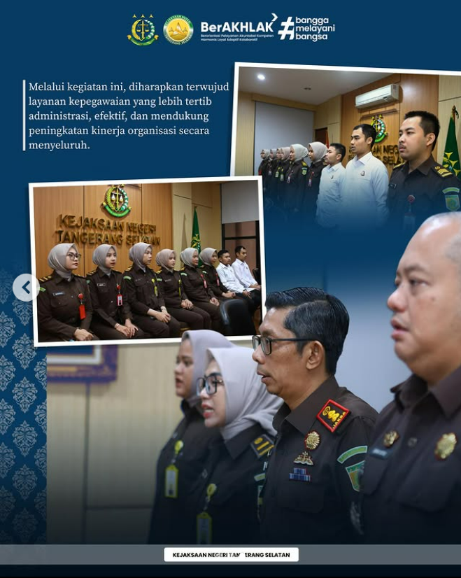 Dalam rangka optimalisasi layanan kepegawaian, Kepala Kejaksaan Negeri Tangerang Selatan, Apreza Darul Putra, S.H., M.H. beserta Kepala Subbagian Pembinaan, Bonar Satria Wicaksono, S.H., M.H. dan jajaran mengikuti Zoom Meeting yang membahas berbagai kebijakan dan administrasi kepegawaian sebagai upaya penyamaan persepsi serta peningkatan pemahaman pegawai.